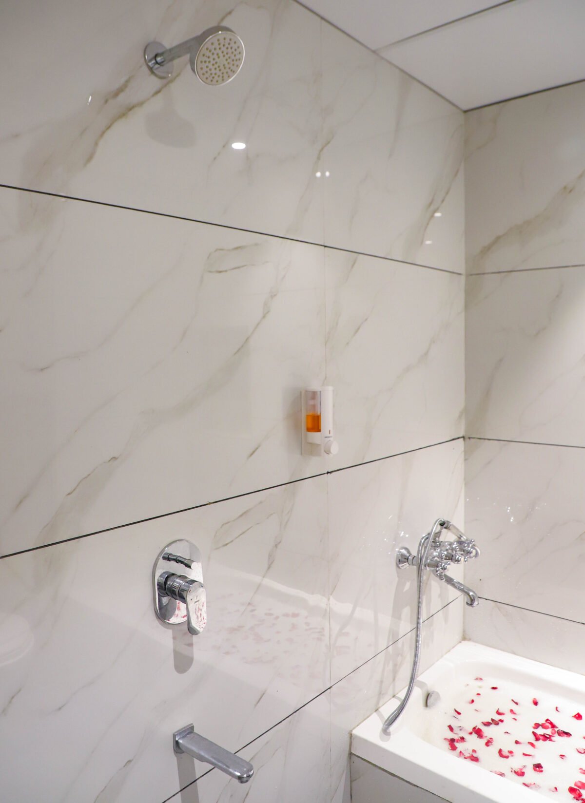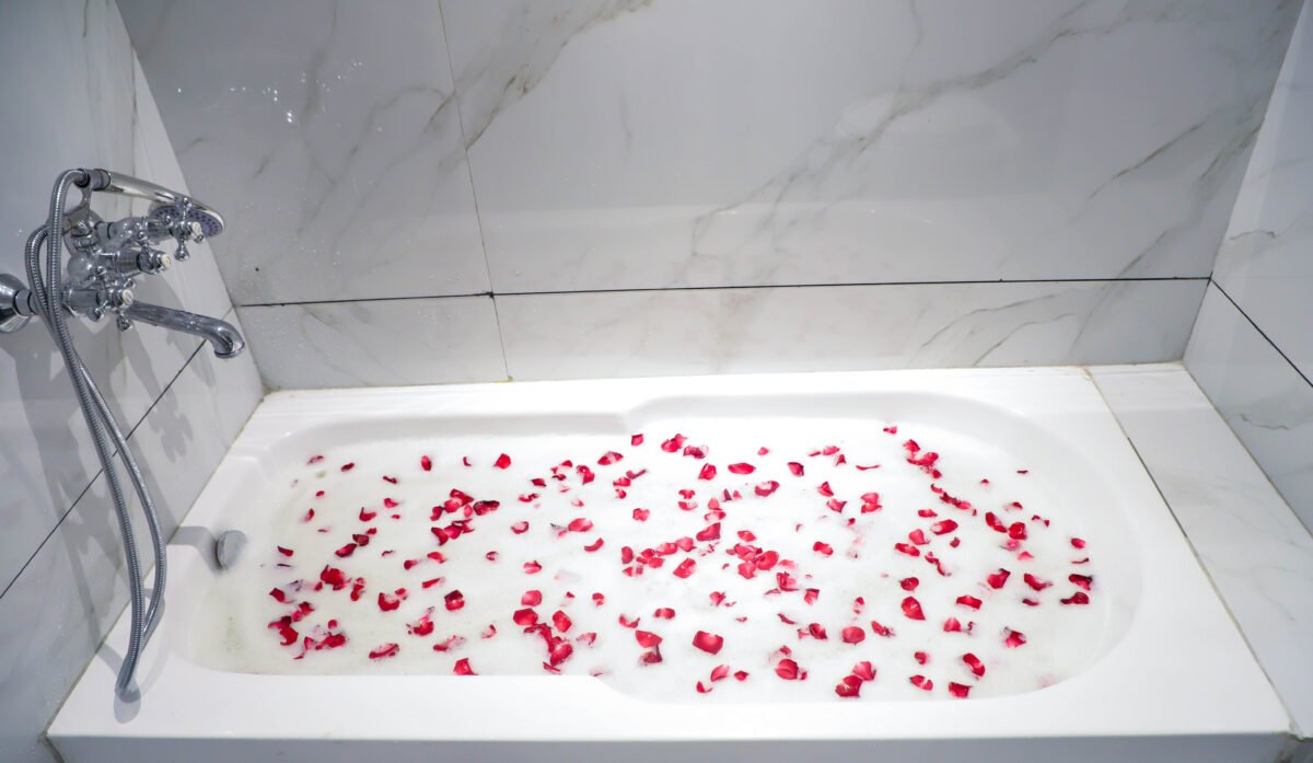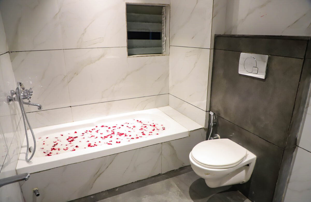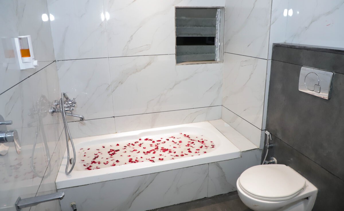 Indulge in a premium stay experience with our Deluxe Room featuring a luxurious bathtub at Hotel Sarah Inn.